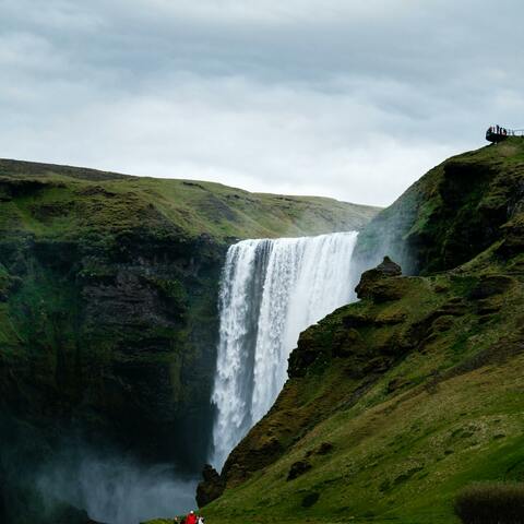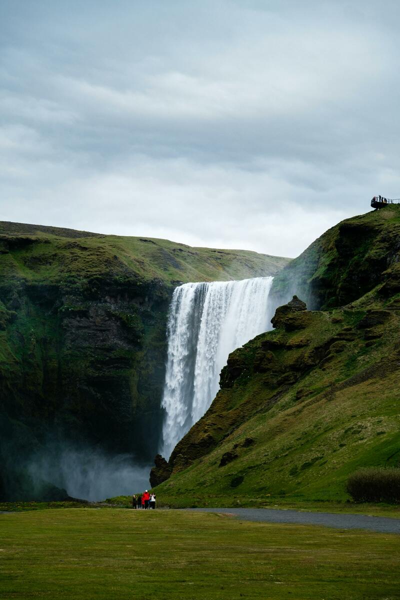 Next, experience the raw power of Skógafoss, a majestic waterfall thundering down a cliff face.